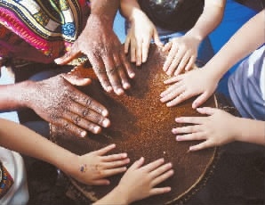 6月29日上午,乌干达艺人教观众打非洲手鼓。