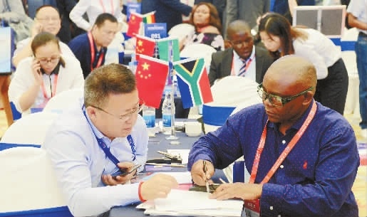 6月28日,中非经贸合作磋商会上,中非与会嘉宾在进行一对一的磋商。