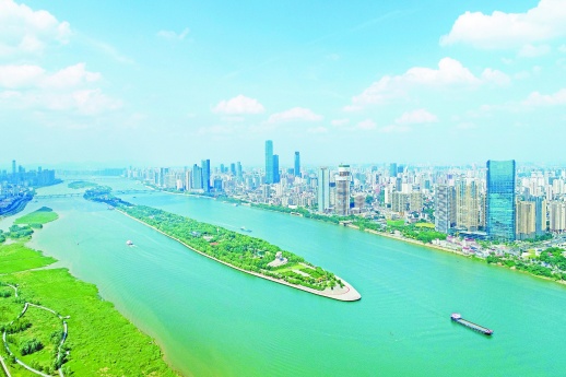 8月27日,蓝天白云下的长沙城区山清水秀,天空高远洁净,一幅“水在城中、人在景中”的秀美画卷正徐徐铺展开来。湖南日报·华声在线记者 李健 摄