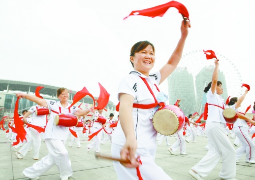2011年9月14日,市民在长沙市贺龙体育广场开心晨练。近年来,长沙市着力抓好城市建设与管理,努力打造宜居长沙,人民的生活环境得到明显的改善。(资料图片)