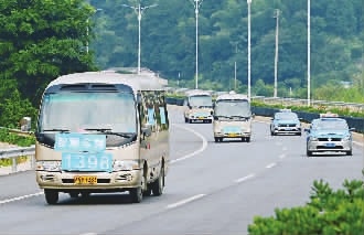 8月31日上午,长沙岳宁大道金唐公路至黄桥大道路段,参加智慧车列交通系统试验测试的各种车辆在有序通行。当天,长沙市开展智慧车列交通系统试验测试,共有大巴车、中巴车、出租车200台参加测试。智慧车列交通系统需要智能化道路,让人、车、路协同,使智慧车列最终实现全无人驾驶。(记者 徐行 摄)