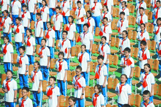 9月25日,长沙市稻田中学,学生齐诵爱国经典语录。当天,2019年全省“我和我的祖国”主题读书教育活动正式启动,中小学生共读红色经典,缅怀革命先烈,接受红色洗礼,抒发爱国情怀。湖南日报记者 辜鹏博 摄