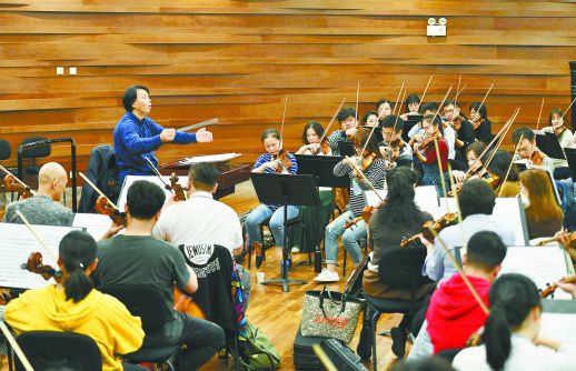 10月22日,长沙市音乐厅,长沙交响乐团演员在肖鸣先生的指挥下进行排练。(记者 田超 摄)
