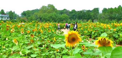 省森林植物园内向日葵吸引游客纷纷拿出手机拍照。 通讯员 彭炜 摄