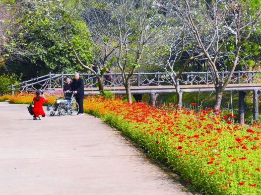 长沙园林生态园园区万株鲜花盛开,美不胜收。园区内种植有近50亩的鲜花,以千日红、波斯菊、孔雀草、太阳草、黄金菊、鸡冠花、百日草等多品种、多色彩的时令花卉已经盛开,分布在景区入口右侧的人湖周边以及地湖花溪区域。