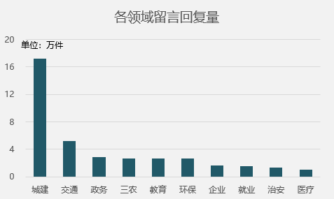 在《领导留言板》上,城建是网民留言最多的领域,也是各地留言办理力度最大的领域,共有17.2万件网民留言获答复,占年度回复总量的43.2%(图)。
