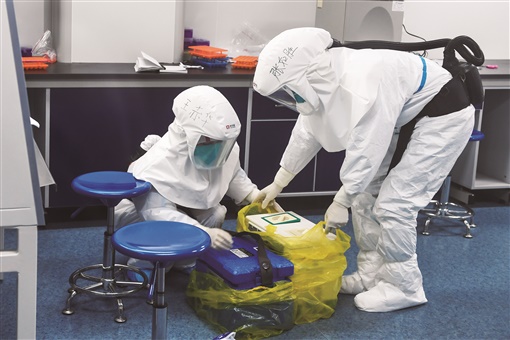 最大的风险还是看不见的病毒。运送样本的箱子、采样用的样本管沾染病毒,或者核酸提取步骤中没有完全裂解、灭活不够彻底,都有可能让检测人员暴露于危险中。