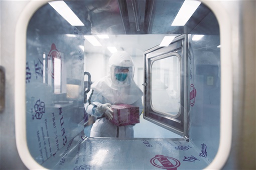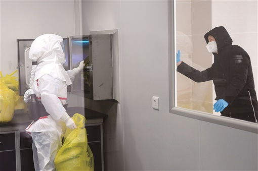 3月2日,送样人员将样本箱放入传递窗。传递窗两边各有一扇小门,一边打开,放入样本箱后,必须严丝合缝地关上,另一边才能开启接收。