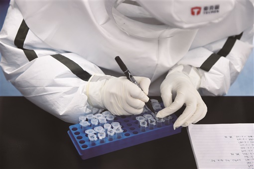 检测至少要达到生物安全二级防护水平,对室内洁净、分区、通风系统、消毒灭菌等方面都有极高的要求,人员保护措施也须达到三级。检测是“流水线”操作,一般分为4个步骤:样本整理编号、核酸提取、试剂配置、上机扩增。