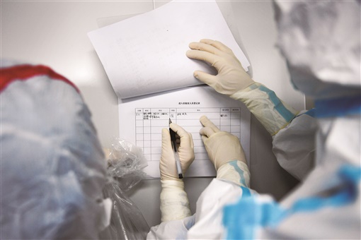 每一位人员进入核酸检测实验室前必须测量体温并在表格上登记。