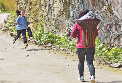 图为三位老师去学生家送教材。鲁礼安摄