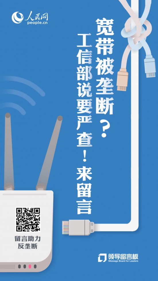 您使用的宽带是否被物业、代理商“卡脖子”?被强制消费?所在地区“提速降费”政策落实情况如何?来人民网《领导留言板》留言,共同营造安全、高效、快速的网络环境。(刘书含 实习生韦霖璐、张悦)