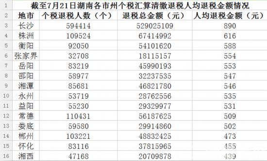 湖南个税汇缴退税10.45亿元!看看各个市州人均退了多少