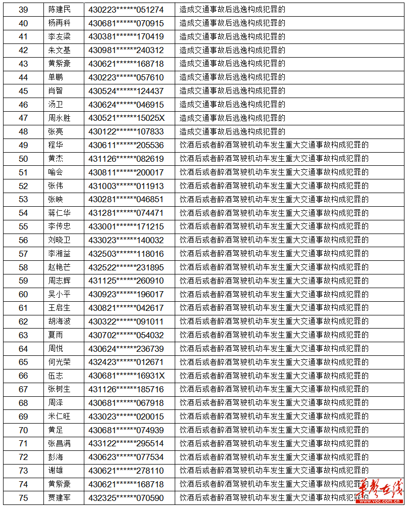 实名曝光!湖南又有75人被终生禁驾