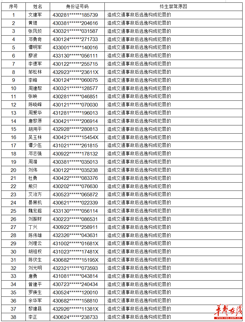 附:湖南6、7月终生禁驾名单