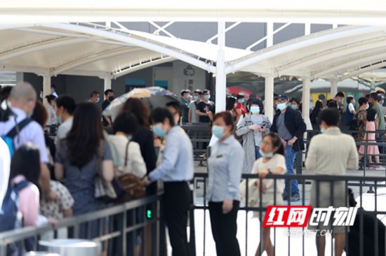 湖南省博物馆门外排起了长龙,等待进馆的队伍一直沿着东风路排到了烈士公园西门。