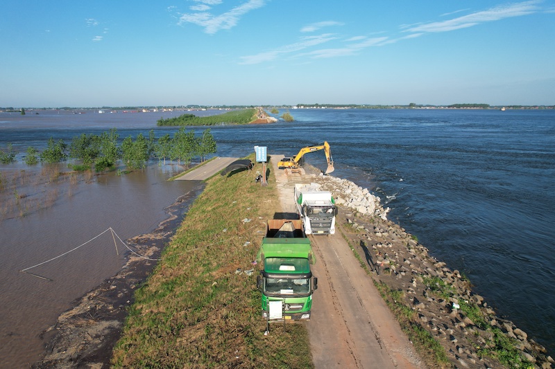目前,前线正加紧组织工程机械加紧施工,在决口两端建设4个倒车平台,并在决口两端倾倒大型石块,建设“裹头”,减缓水流对决口冲刷,防止决口扩大。(申智林)