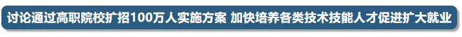 会议讨论通过了落实《政府工作报告》提出的今年高职扩招100万人任务的方案。主要内容包括: