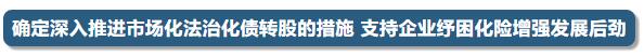 1、建立债转股合理定价机制,完善国有企业、实施机构等尽职免责办法,创新债转股方式,扩大债转优先股试点,鼓励对高杠杆优质企业及业务板块优先实施债转股,促进更多项目签约落地。