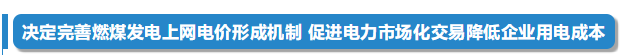 抓住当前燃煤发电市场化交易电量已占约50%、电价明显低于标杆上网电价的时机,对尚未实现市场化交易的燃煤发电电量,从明年1月1日起,取消煤电价格联动机制,将现行标杆上网电价机制,改为“基准价+上下浮动”的市场化机制。