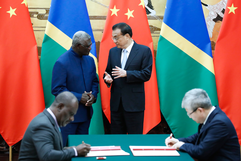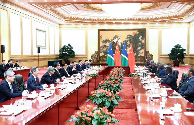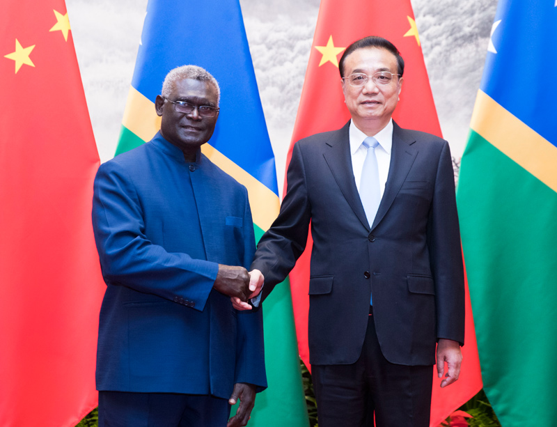 李克强表示,中国是所罗门群岛第一大贸易伙伴和出口市场,两国在渔业、林业、矿业等领域合作前景广阔。中方愿将“一带一路”倡议同所方发展战略相衔接,共商共建共享,积极商谈促进贸易便利化的安排和举措,拓展金融、农业、教育等领域互利合作,欢迎所方有竞争力的优质产品扩大对华出口,鼓励更多有实力、信誉好的中资企业按市场化原则积极参与所基础设施建设。中方愿同所方加强民间、地方交往,同意将所罗门群岛列为中国公民组团出境旅游目的地,支持所方主办2023年太平洋运动会,欢迎所方出席第三届中国—太平洋岛国经济发展合作论坛。中方愿同所方加强南南合作和经验交流,期待双方共同努力,开辟两国未来合作的新前景。