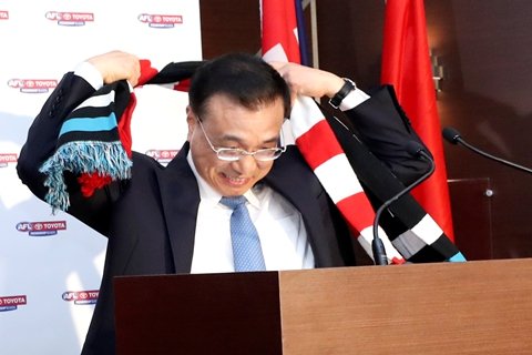 “我戴上两条围巾就是要表明,中国人民对所有澳大利亚人民都满怀热情,无论哪个球队获胜,作为中国人,我们都会为他喝彩!”中国总理的态度,引来澳大利亚球迷全场热烈的掌声和欢呼声。