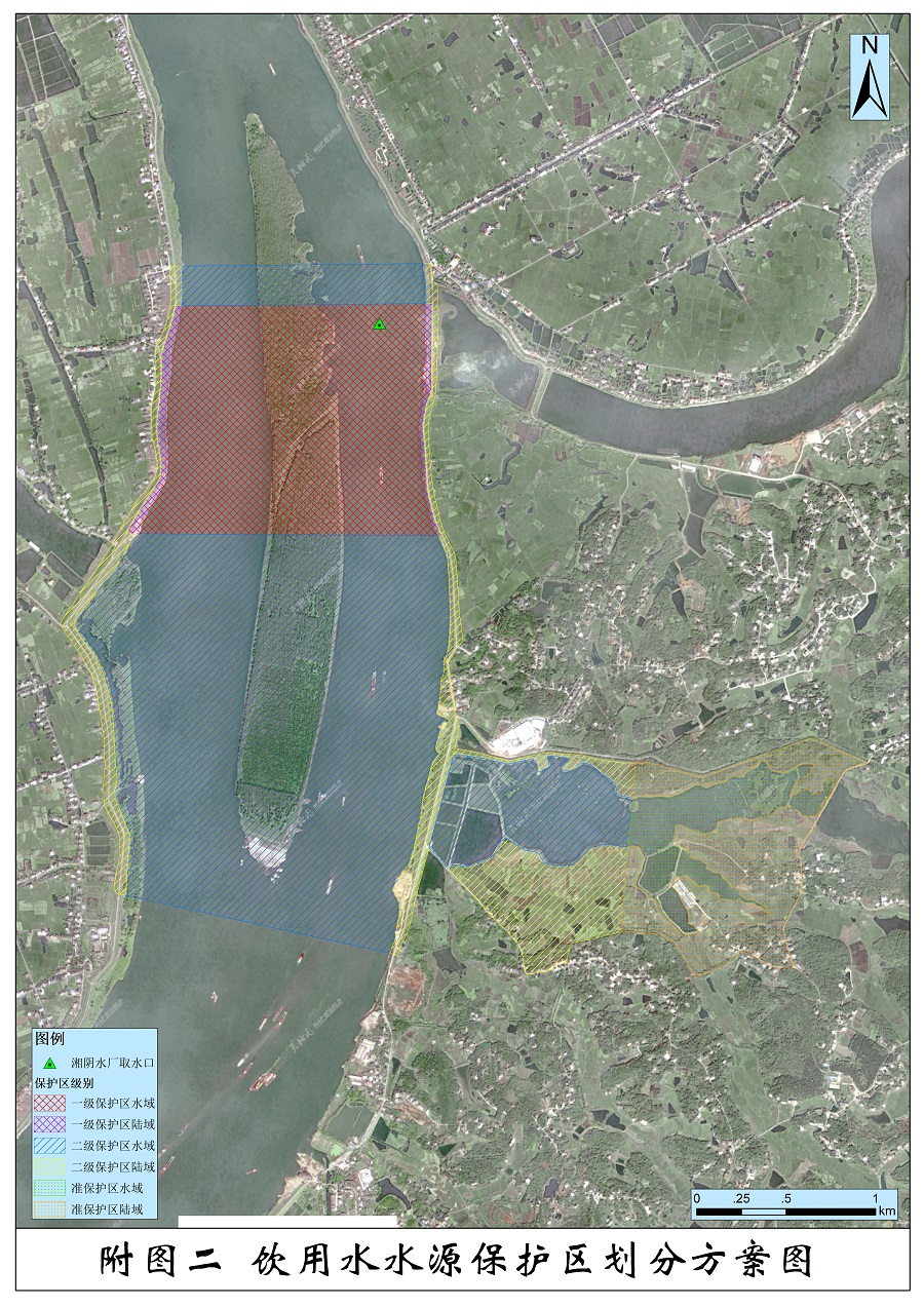 依据国家环保部发布的《饮用水水源地保护区划分技术规范》(HJ/T338-2007)相关标准,结合我县饮用水源保护区的地形、地标、地物特点,确定屈原管理区湘江湘阴段饮用水水源保护区划分(调整)为一级保护区和二级保护区,不设准保护区;湘阴县湘江饮用水水源保护区划分(调整)为一级保护区、二级保护区和准保护区。