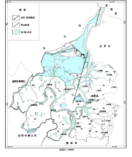 附图1 湖南湘阴高新技术产业园区调区扩区规划用地评估区地质灾害分布图 比例尺1:50000