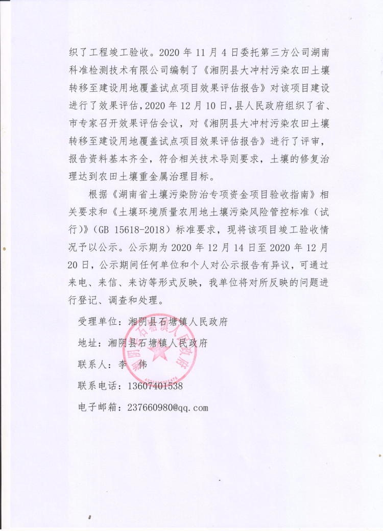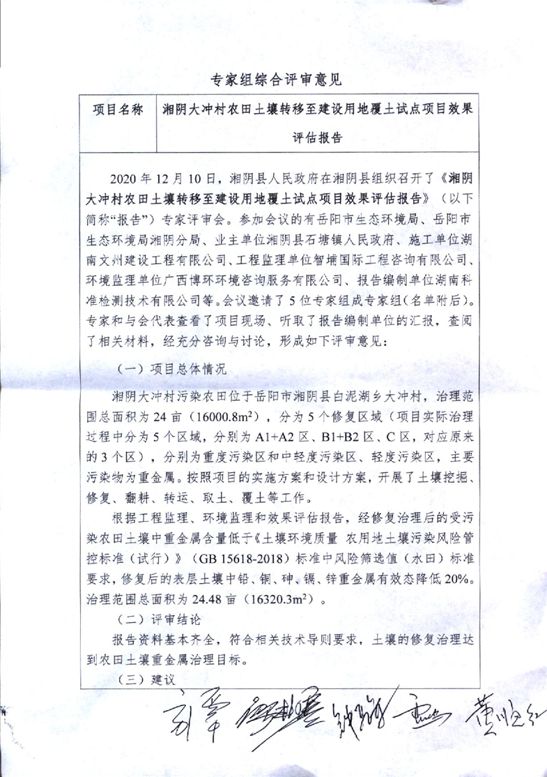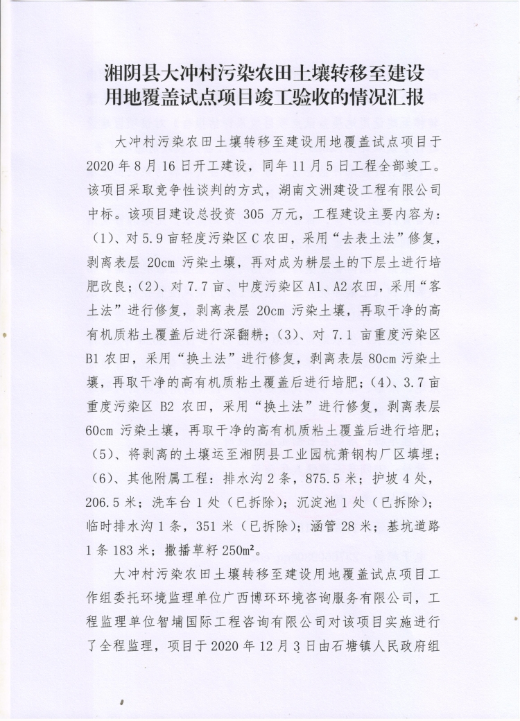 湘阴县大冲村农田土壤转移至建设用地覆盖试点项目竣工验收的情况汇报、湘阴县大冲村农田土壤转移至建设用地覆盖试点项目效果评估报告公示