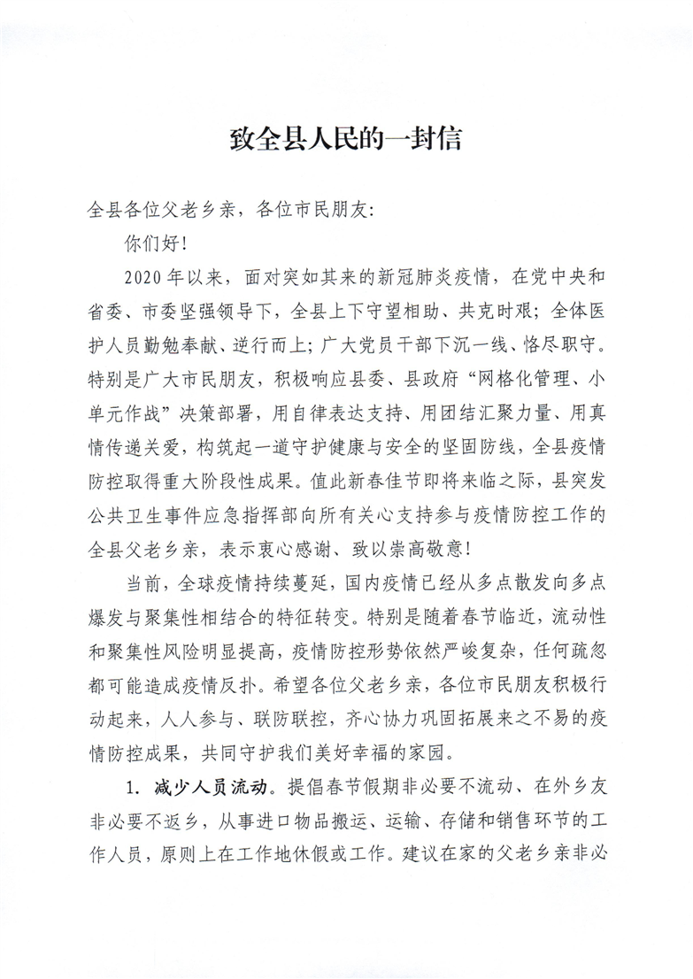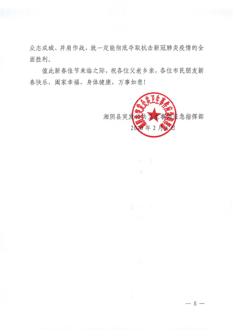 湘阴县突发公共卫生事件应急指挥部致全县人民的一封信