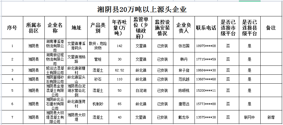 为进一步加强货物源头超限超载管理,根据《湖南省货物运输车辆超限超载治理办法》(湖南省人民政府令296号)文件精神,特对我县20万吨以上规模货物源头企业公示,欢迎社会各界进行监督。监督电话:0730—2261912