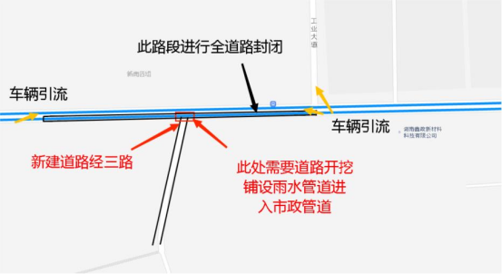 因鑫政新能源两侧道路(经三路、经四路)工程施工,需对芙蓉北路顺天大道路口至顺天大道定宇新材料科技有限公司路段南半幅道路进行破路施工,破路期间该段道路需进行交通管制,期间该道路无法通行,车辆需绕行。该路段自2022年11月22日-2022年12月04日全天交通管制。