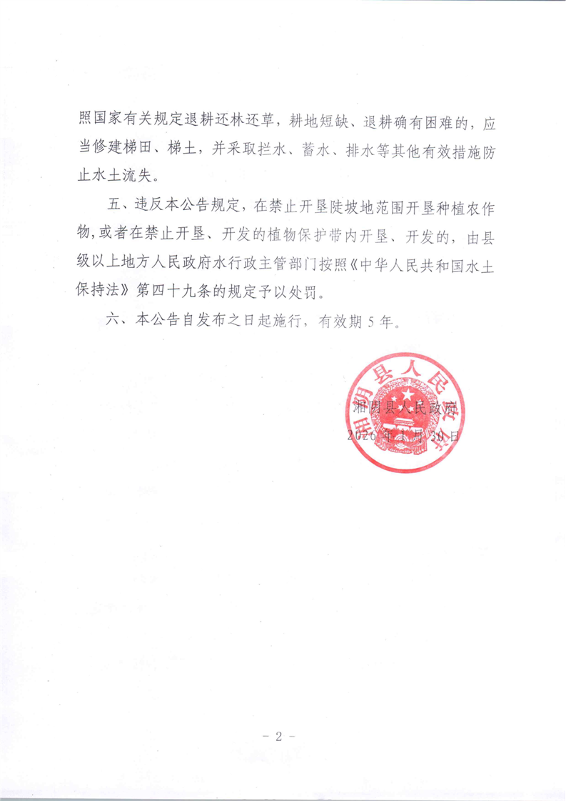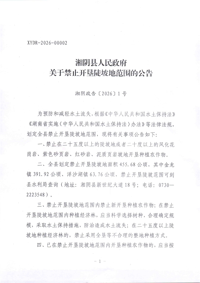 湘阴县人民政府关于禁止开垦陡坡地范围的公告