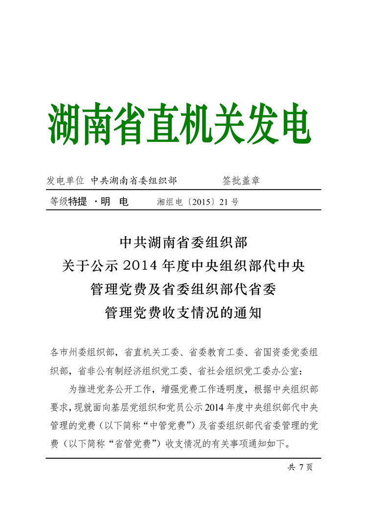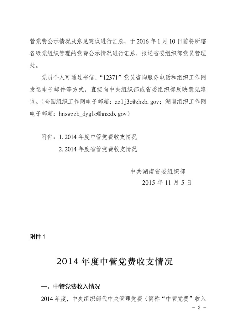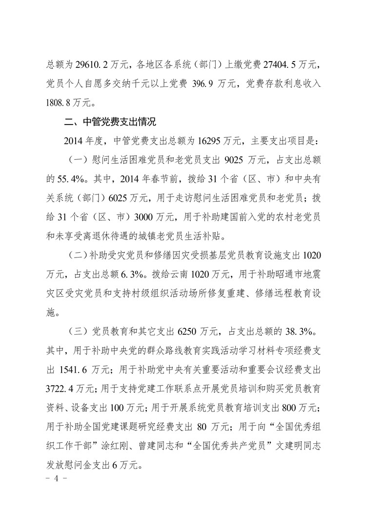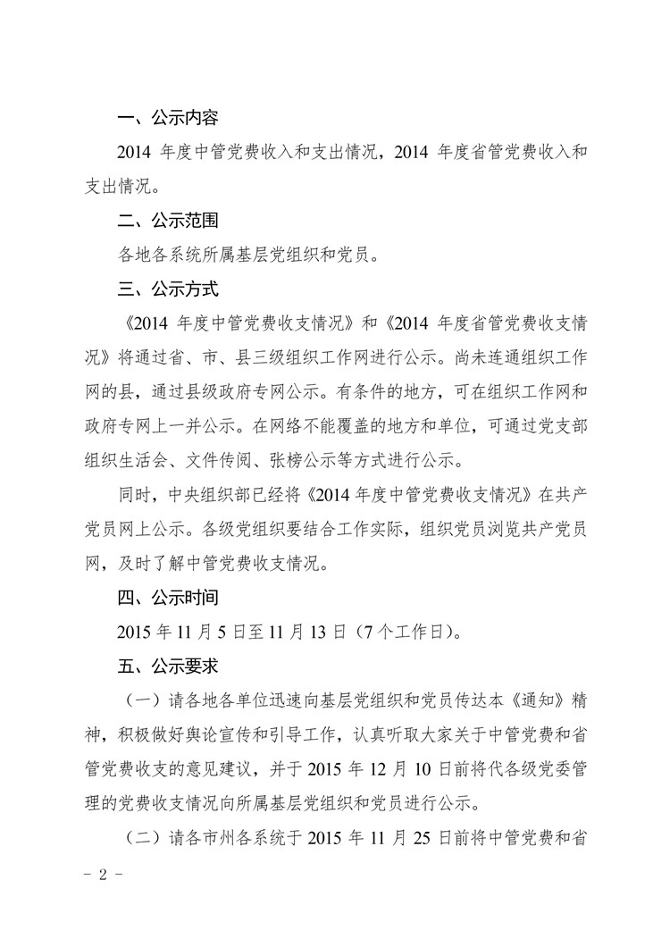 关于公示2014年度中央组织部代中央管理党费及省委组织部代省委管理党费收支情况的通知