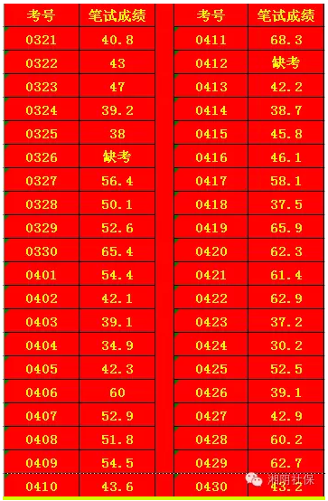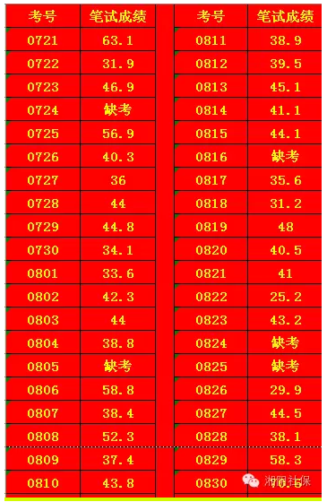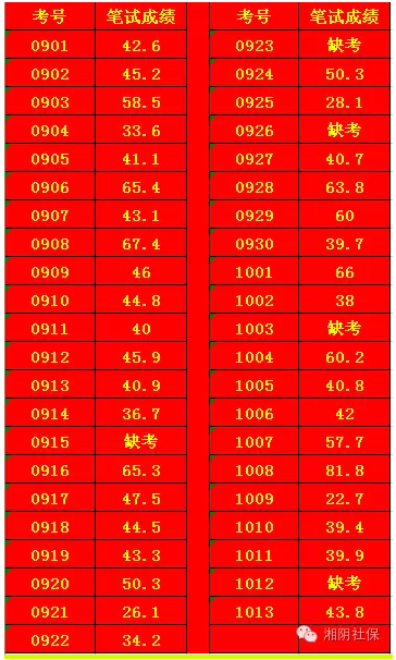 湘阴县2016年财政局村账乡代理财会岗位人员招考笔试成绩
