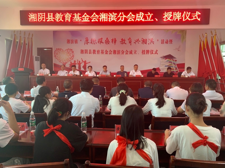 8月26日,湘滨镇举办 “厚德报桑梓,教育兴湘滨”捐助活动暨县教育基金会湘滨分会成立、授牌仪式。