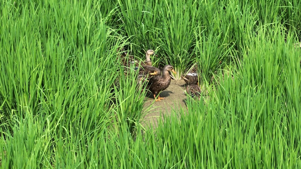 湘阴县东福绿色农业有限公司负责人介绍,前期,我们在禾苗稳兜以后,每亩用16到18只绿头鸭来控草和控虫,后期(水稻灌浆期),我们用(每亩)300到500只青蛙,来控制飞虱,达到防治的效果。