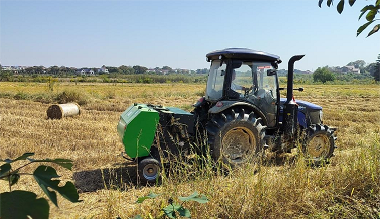 11月2日,湘阴县三塘镇金崙村稻藠轮作基地里机声隆隆,一台台打捆机来回穿梭,将收割后的秸秆进行回收打捆。