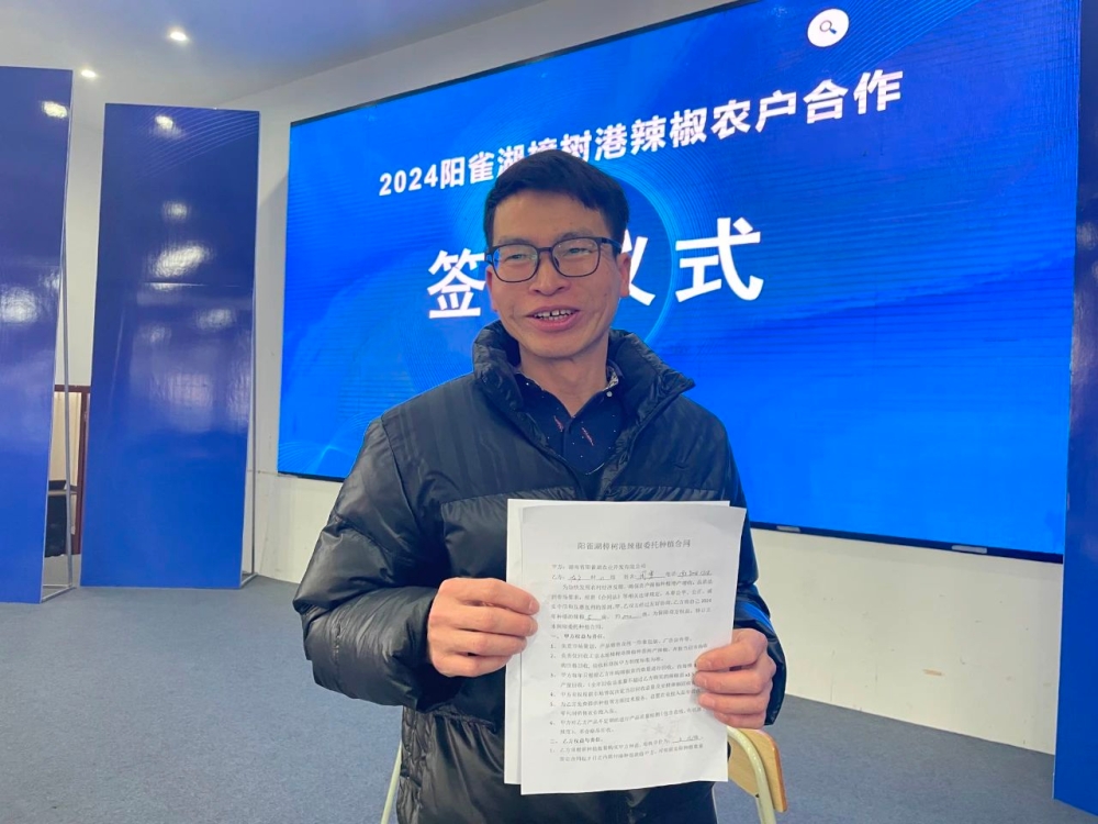 1月30日,樟树镇辣椒种植户受邀参加2024年樟树港辣椒农户签约仪式暨技术培训,并与阳雀湖辣椒农业开发有限公司现场签订购买辣椒种苗合同。