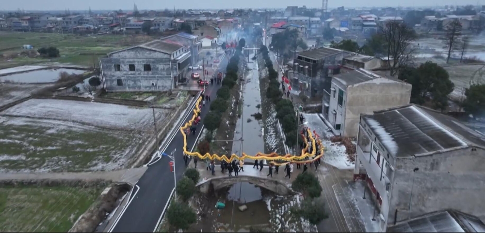 咚咚咚……伴随着铿锵有力的鼓乐声,舞龙队员们健步如飞,高举祥龙紧跟着龙珠齐力挥舞。只见金龙时而上下翻腾、左右盘旋,时而倒地平舞、蜿蜒遨游,活灵活现地展示了龙的气势与威武,舞出了满满的精气神,也舞出了人们对美好生活的期盼,村民们通过这种传统的方式,祈愿新的一年五谷丰登、风调雨顺。
