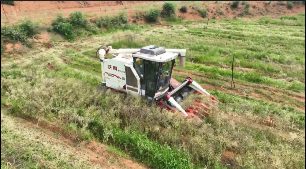 走进位于洋沙湖镇沿江村的湖南省长康实业有限责任公司绿色食品芝麻、油菜种植核心示范基地内,记者看到,油菜已大片成熟,饱满的菜籽角挂满油菜秆。农机手正驾驶着收割机在田里来回穿梭。随着收割机齿轮转动,一株株油菜被快速地投入机器,完成收割、脱粒、分离、粉碎等工序,油菜壳、油菜秸秆被自动粉碎成末,均匀抛洒在田间,实现秸秆还田,油菜籽则通过卸粮口源源不断地涌向车斗中,将成为获得“袁隆平特别奖”的长康“绿态”压榨菜籽油的原料。