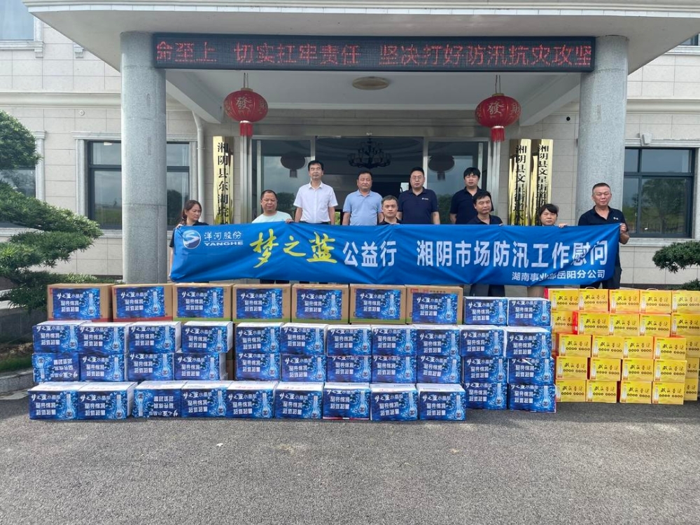 7月3日,洋河股份湘阴县旭日鑫酒业爱心团队来到东湖垸防汛一线,看望慰问防汛人员,送去爱心物资,助力防汛工作。