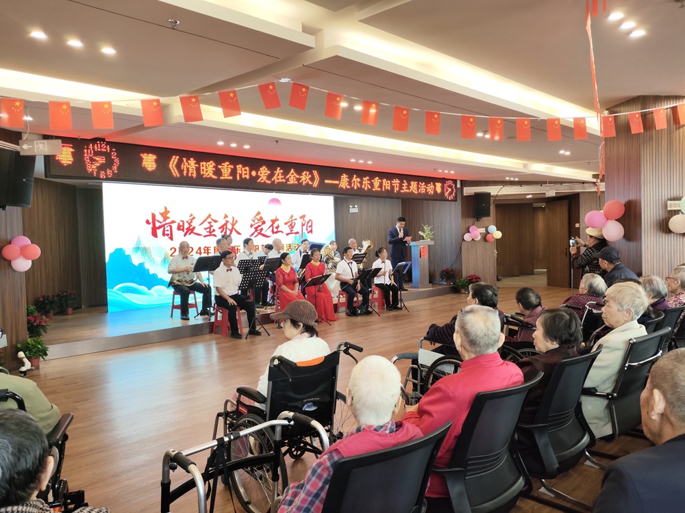 金秋十月爽,九九又重阳。10月10日,康尔乐文旅智慧康养基地举办“情暖金秋 爱在重阳”活动,护工、入住老人们齐聚一堂,共度重阳佳节。