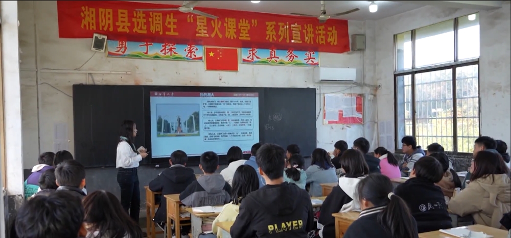 目前,“星火课堂”已先后面向杨林寨中学、滨湖学校、石塘中学、湘阴一中、静河中学学生及湘阴籍返乡大学生开展6期活动,累计授课22节次,活动覆盖中小学生及返家乡社会实践大学生1300余人。