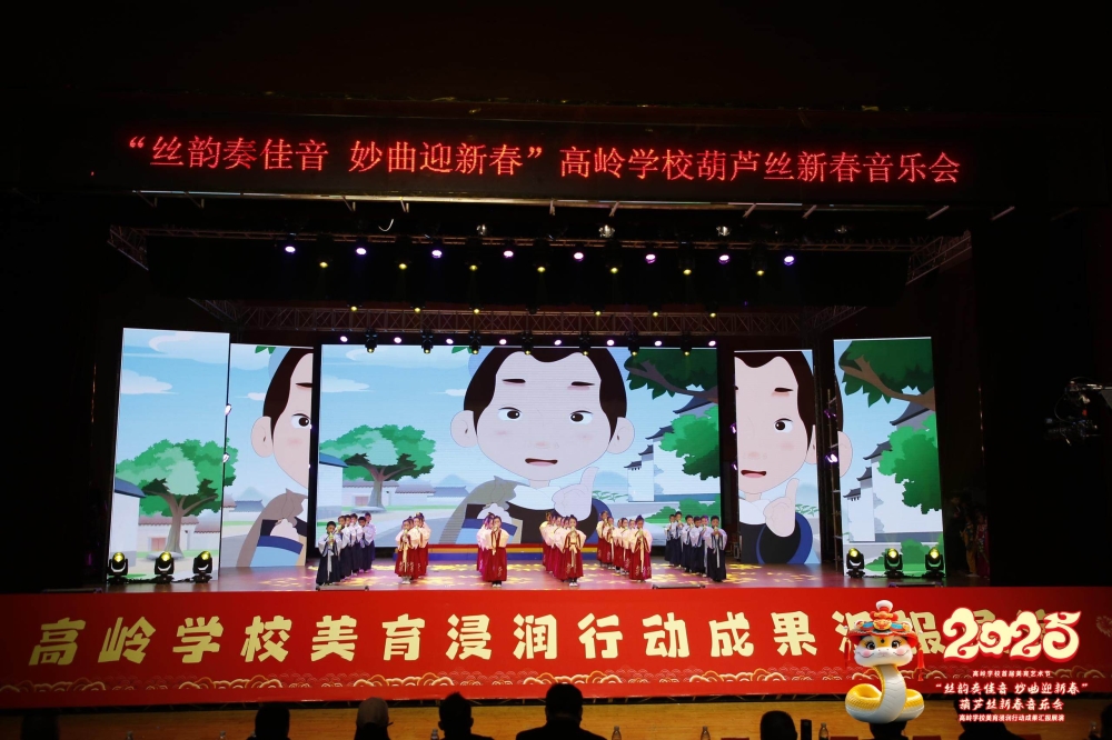 声声丝竹清入耳,莘莘学子美校园。12月19日晚,由高岭学校主办,高岭学校少儿葫芦丝艺术团承办,湖南竹乐调艺术文化传媒有限公司协办的“丝韵奏佳音 妙曲迎新春”葫芦丝新春音乐会举行。