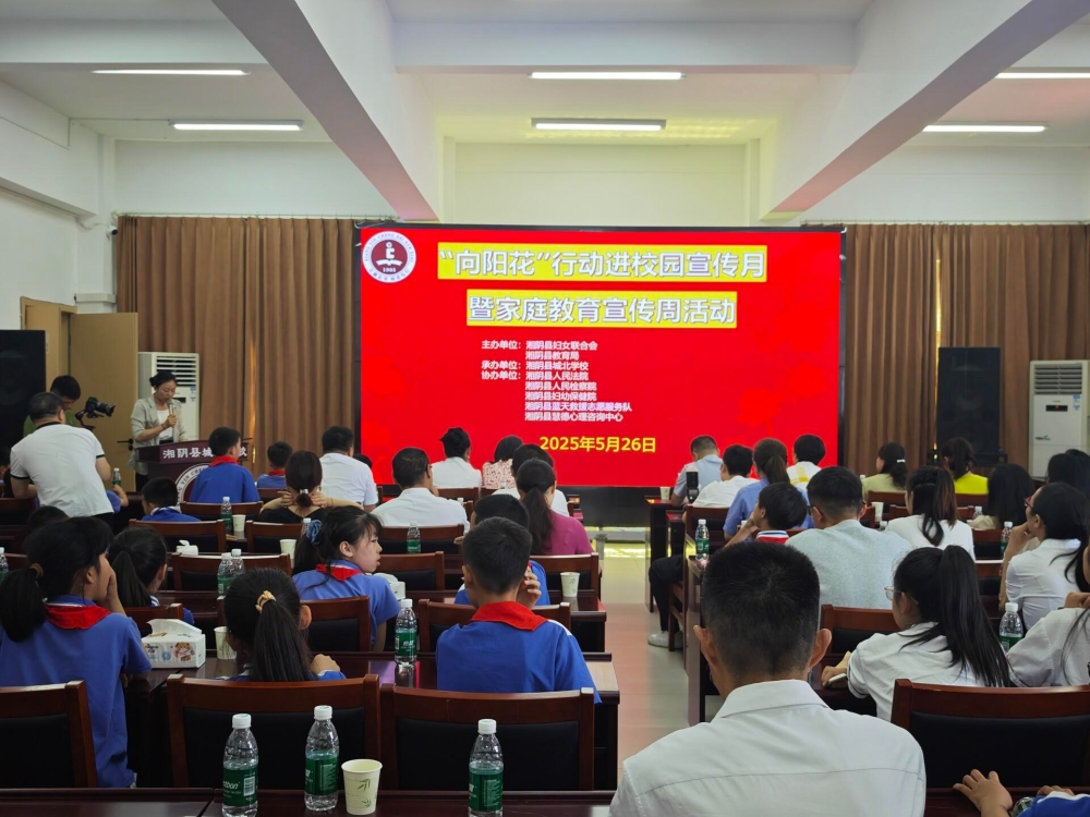 5月26日上午,2025年湘阴县“向阳花”行动进校园宣传月暨家庭教育宣传周活动在城北学校正式启动。80余名老师家长学生参加活动。
