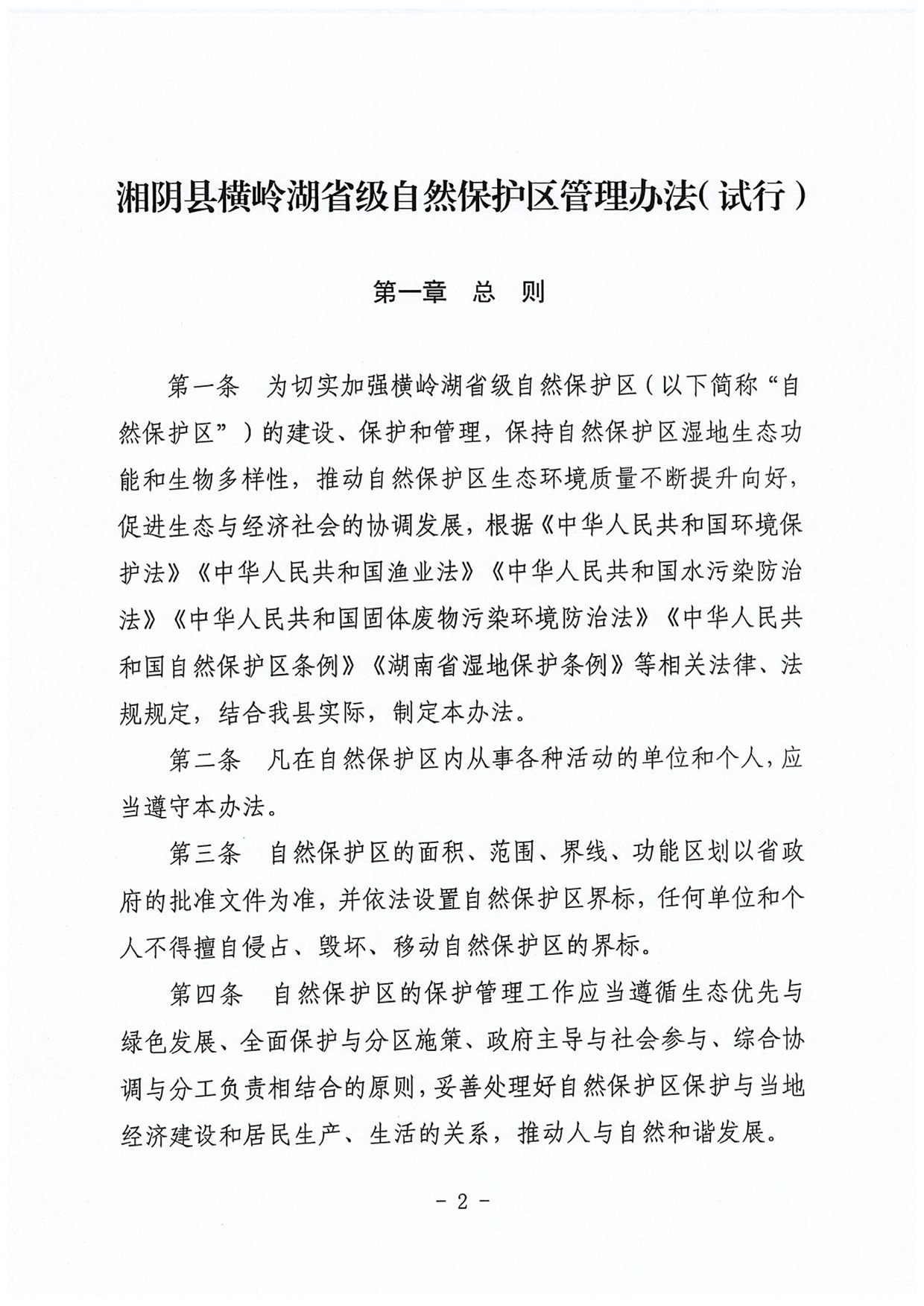 关于印发《湘阴县横岭湖省级自然保护区管理办法(试行)》的通知