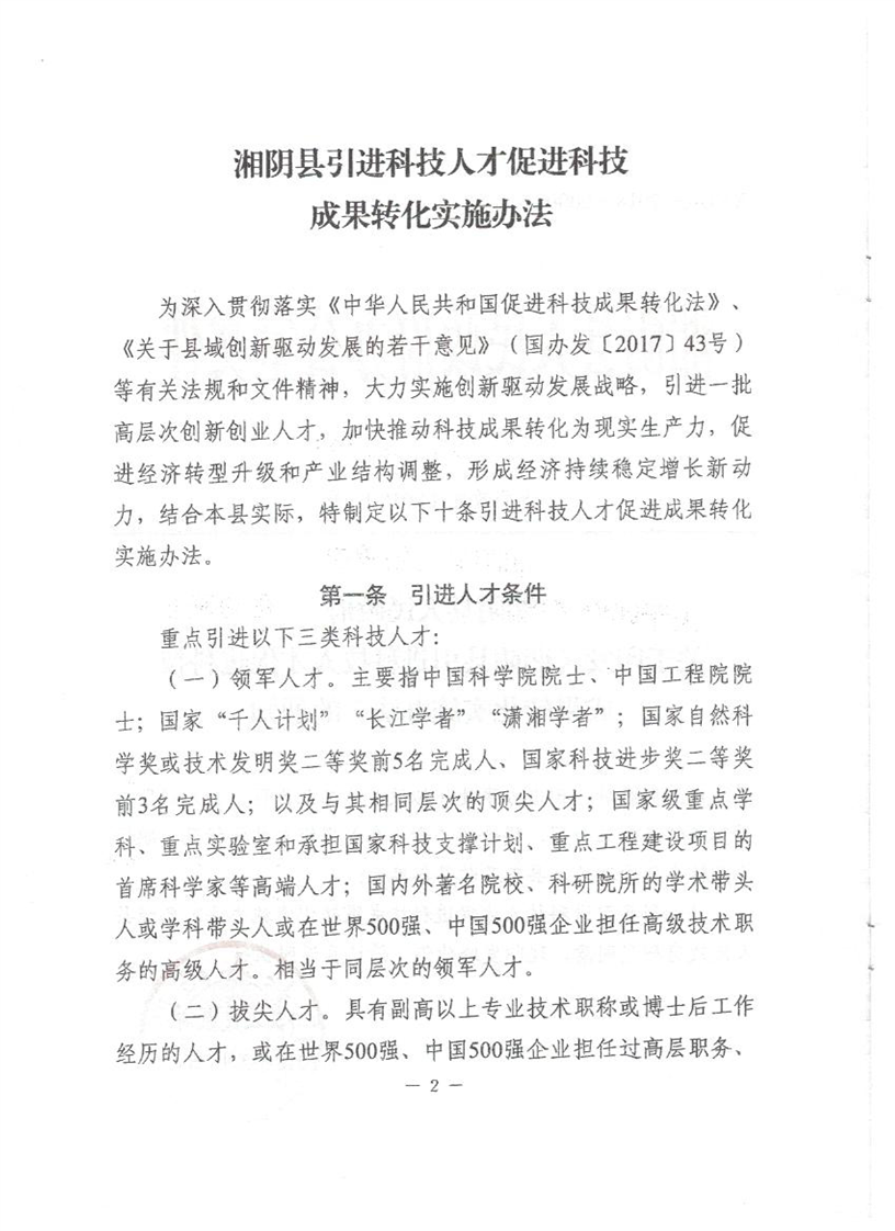 解读:《湘阴县引进科技人才促进科技成果转化实施办法》