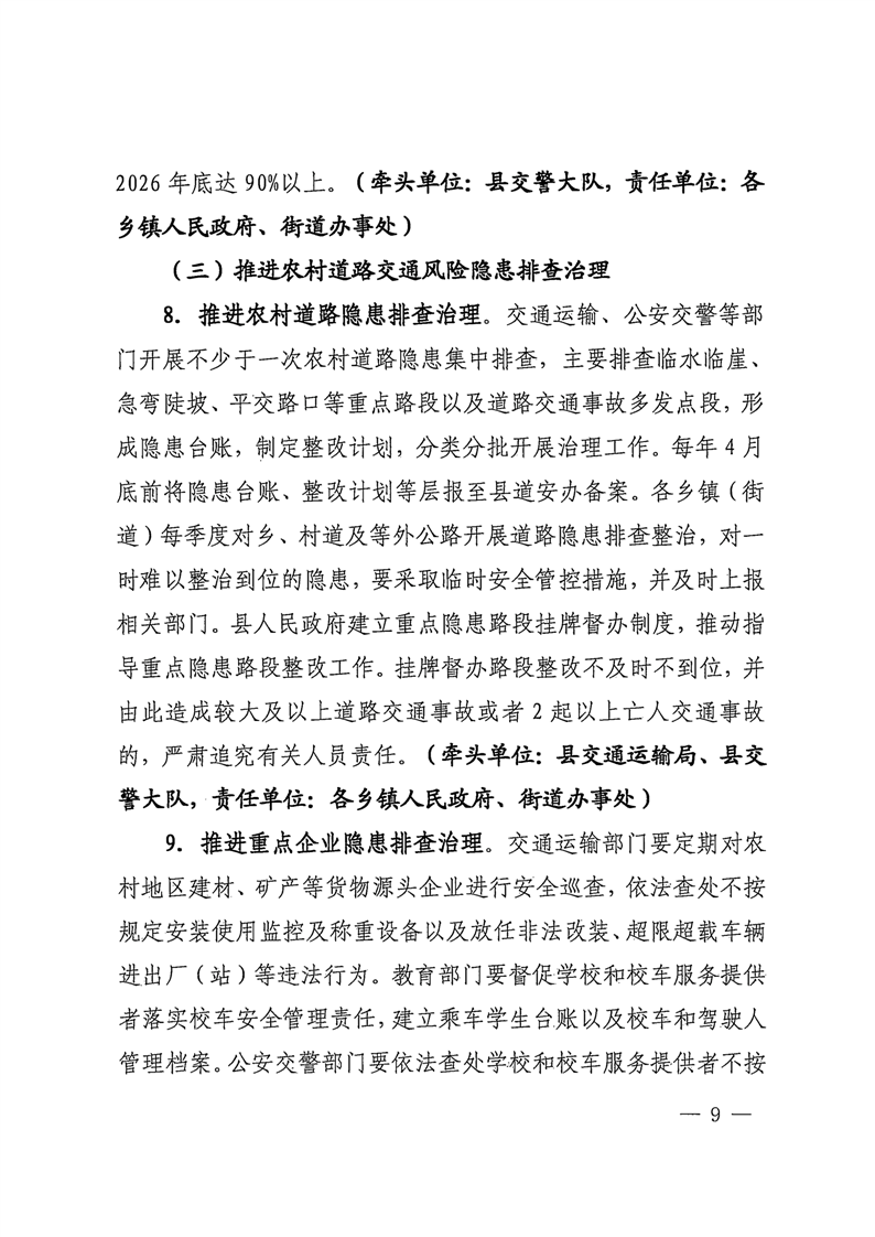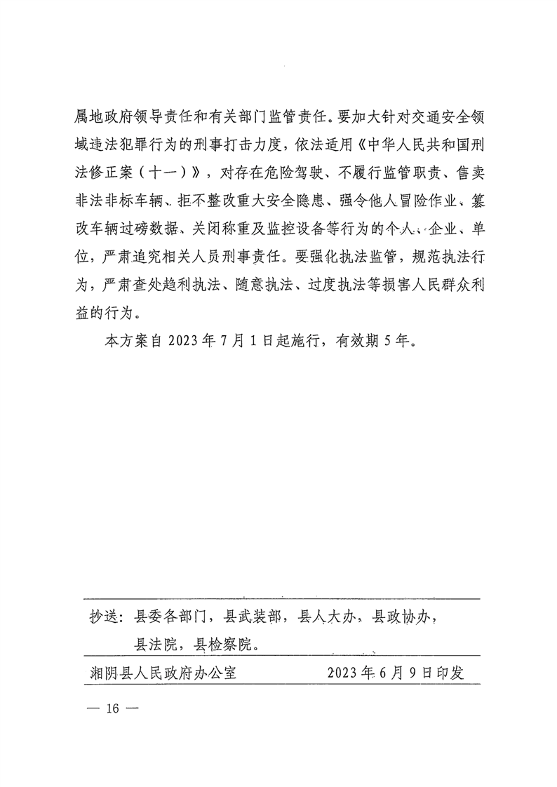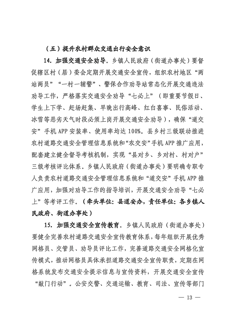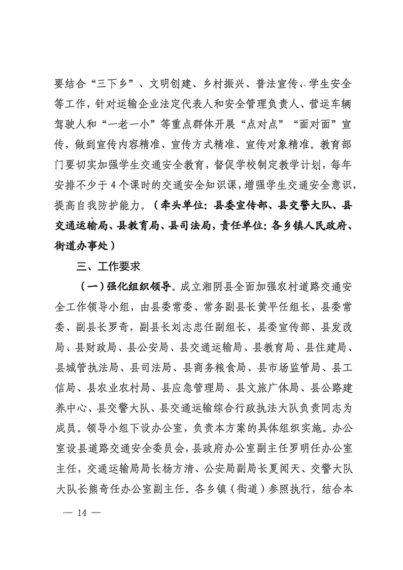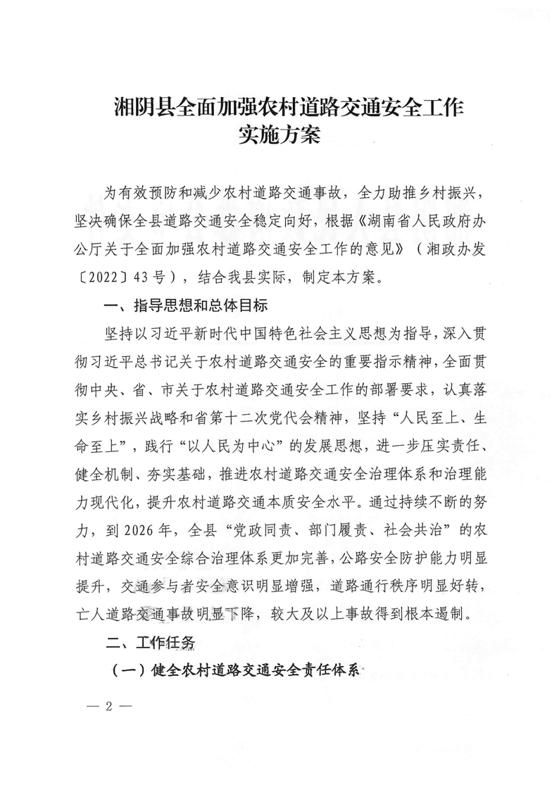 关于印发《湘阴县全面加强农村道路交通安全工作实施方案》的通知