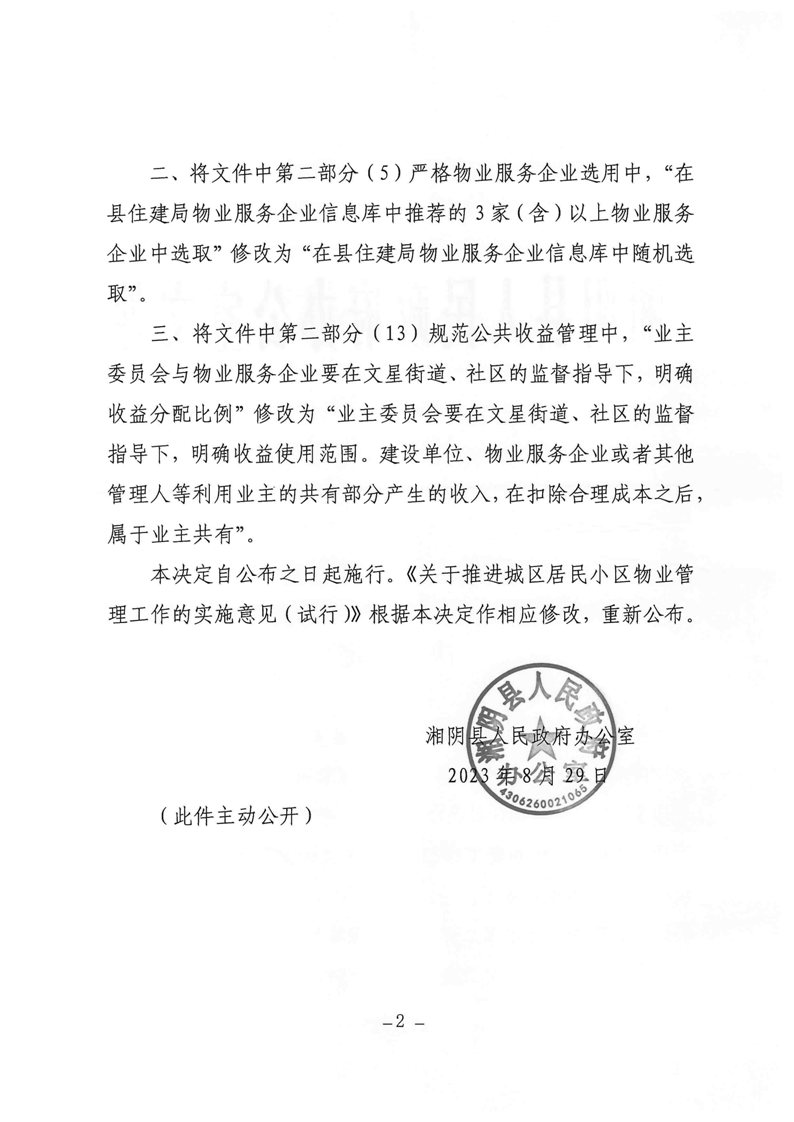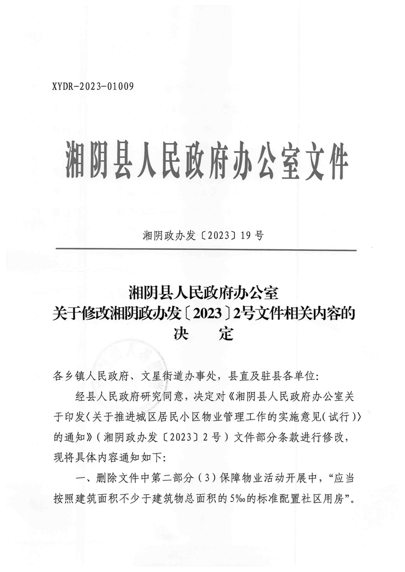 关于修改湘阴政办发〔2023〕2号文件相关内容的决定
